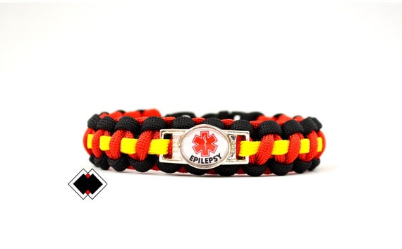 Epilepsy Medical Alert Paracord Bracelet black/red/yellow or Custom Made - Handmade in USA